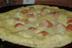 - Verser ensuite les 5 oeufs battus en omelette, éparpiller les ingrédients de suite, de façon à avoir un aspect uniforme, et laisser cuire 10 min à feu moyen, en faisant attention à ne pas brûler le dessous de l'omelette.