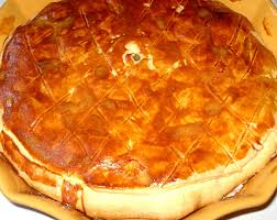 - Dans un moule rond, étaler une pâte brisée puis disposer un lit de lamelles de pommes (douillet le lit, vous pouvez mettre deux ou trois couches de pommes), éparpiller des raisins secs et des pignons de pin.